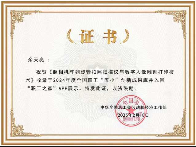 我校余天亮老师的《照相机阵列旋转拍照扫描仪与数字人像雕刻打印技术》成功收录于中华全国总工会劳动和
